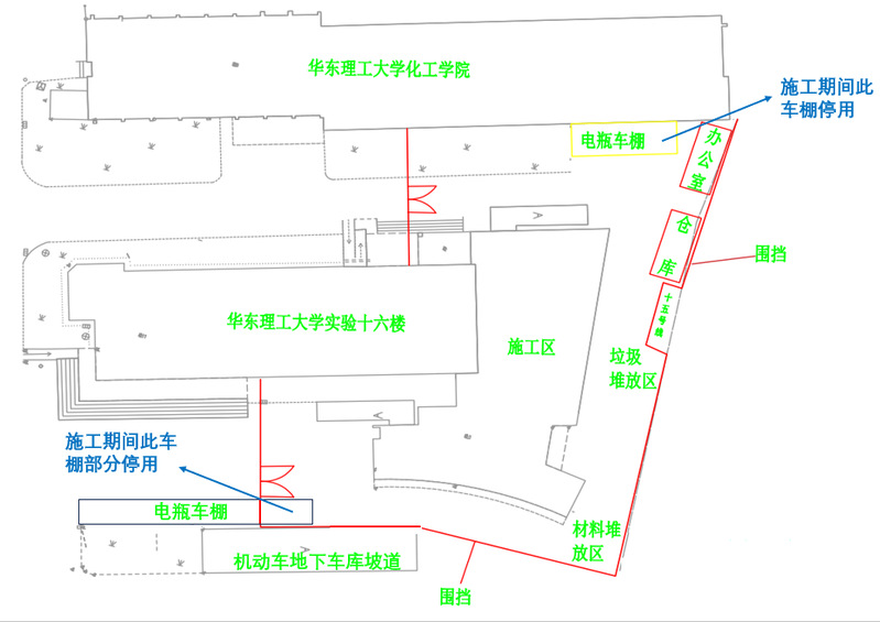 按照文明施工要求,為確保徐匯校區(qū)實驗十六樓裙樓修繕工程施工安全及現(xiàn)場揚塵控制,需在施工范圍內(nèi)搭設(shè)安全圍擋,因此對實驗十六樓周邊通勤道路進行封閉管理。
